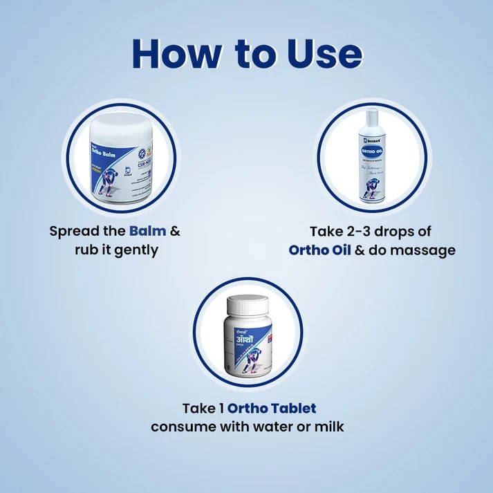 🔹 Ortho Balm – Apply 2-3 times daily on the affected area and massage gently.